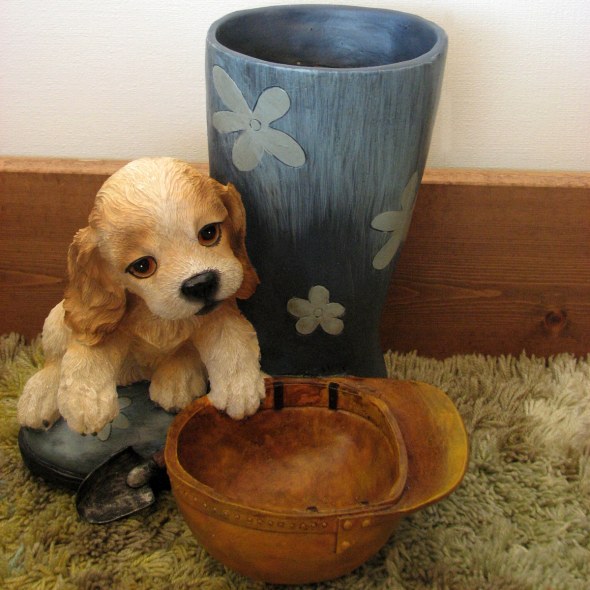 かわいい子犬のわんちゃんのアニマルプランター♪玄関のウエルカムドッグ置き物に♪ガーデンのフォーカルポイントに♪室内の鍵や携帯電話置きとしても「キャバリア」アニマルプランター・ドッグ置物【送料無料】【送